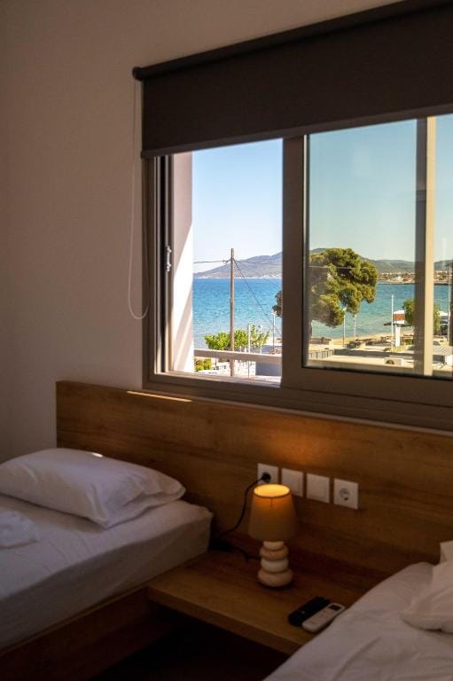 Our Superior Sea View Apartments offer spacious, light-filled interiors with stunning views of the Aegean. Available with one or two bedrooms, they are perfect for couples, families, or small groups looking for extra comfort. Each apartment features a private balcony facing the sea, a modern bathroom, and a fully equipped kitchenette - ideal for a relaxed and independent stay just steps from the beach.