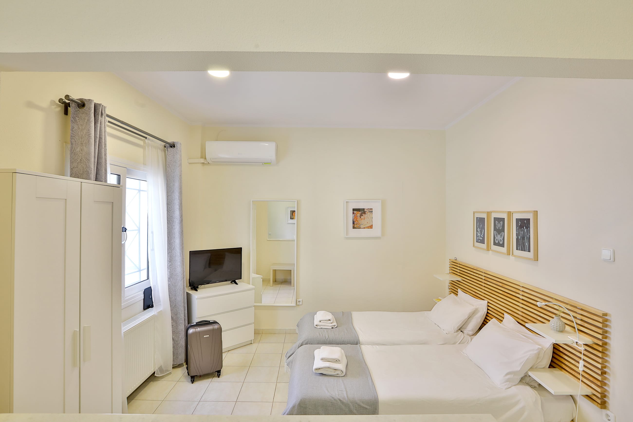 Located in the quiet and safe neighbourhood of Artemida, just 100m from the sea and very close to the high street and only a short walk away from banks, supermarkets, all-day bars, coffee shops, pharmacies etc.